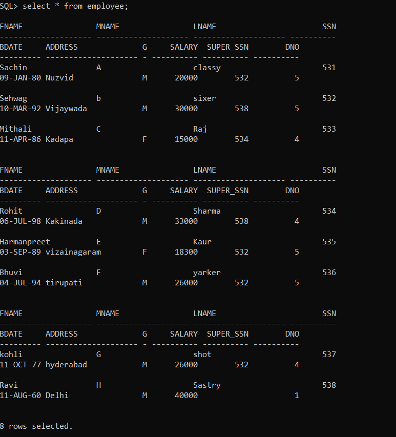 MY EMPLOYEE AND DEPARTMENT TABLE: