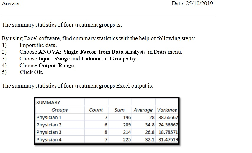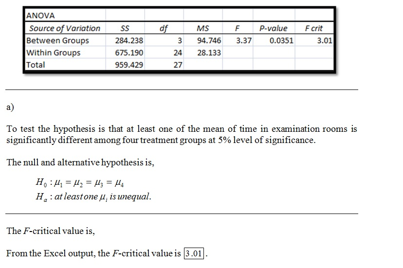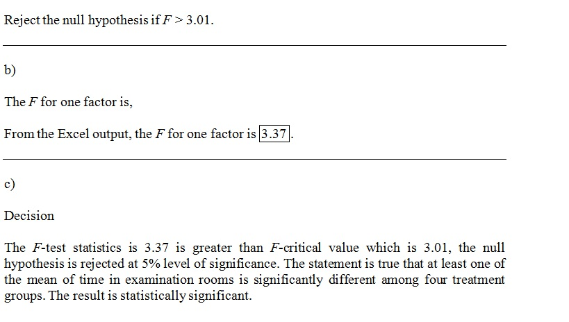 One particular morning, the length of time spent in the examination rooms is recorded for each patient seen by each physician at an orthopedic clinic. |
