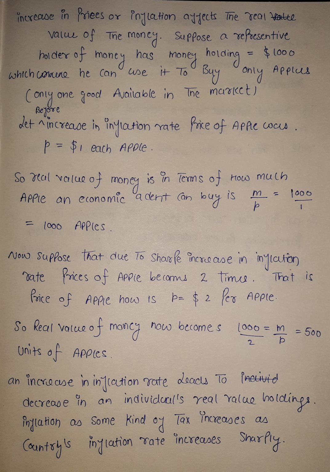 Explain what happens to inflation tax on the holders of money? . Can you think of anyway in which holders of