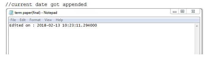 BONUS (5pts): for any .txt file that your program changes the name of, have your program add a line of text that states "Edited on " followed by the current date to the end of the text in the file that it is editing.
