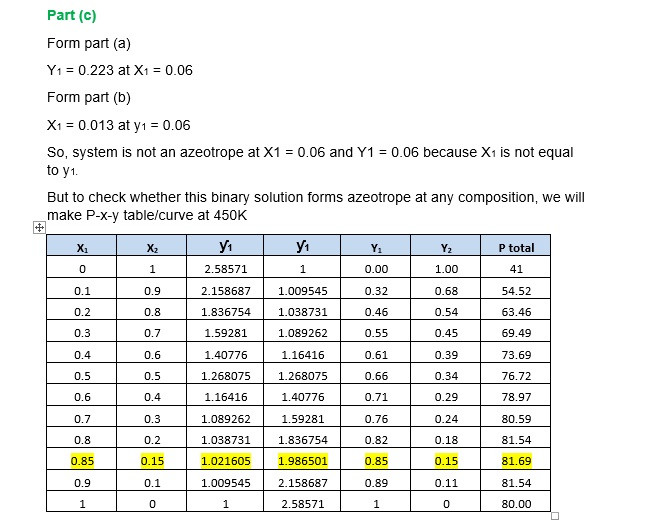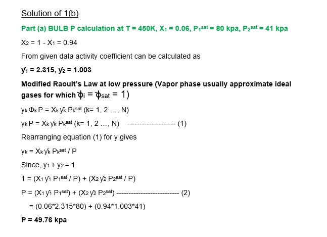 1b. For the system ethyl ethanoate (1) /n -heptane (2) at 450K , assuming the validity of the modified raoult’s law