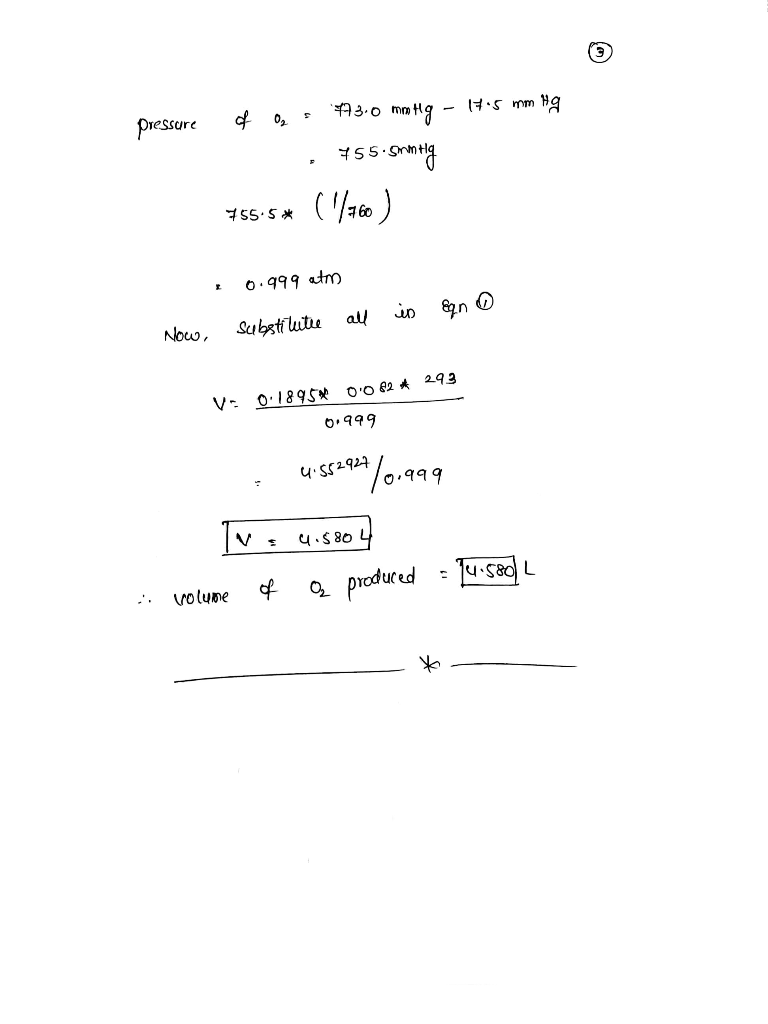 What volume of O2O2 will form in 62.8 seconds at a barometric pressure of 773.0 mmHg . (The vapor pressure of water at this temperature is 17.5 mmHg)