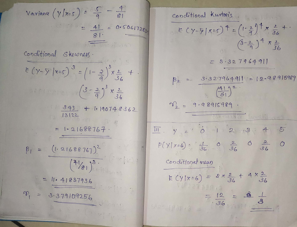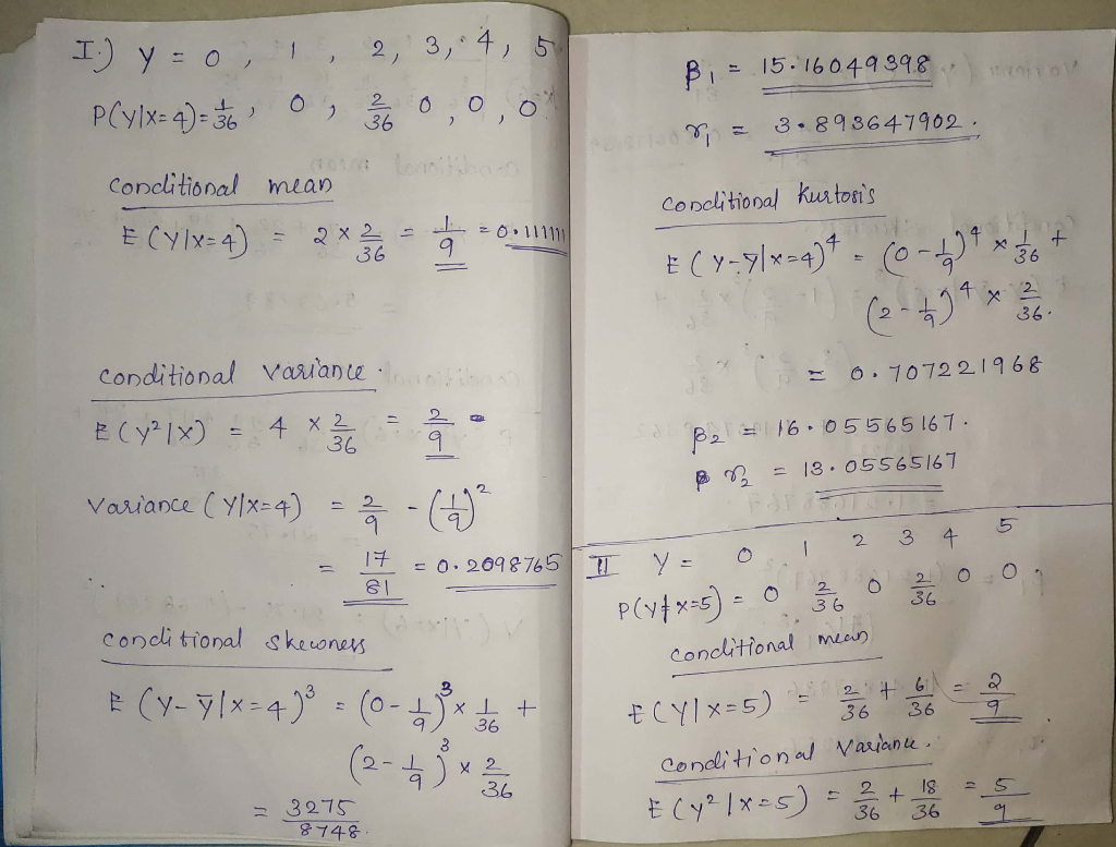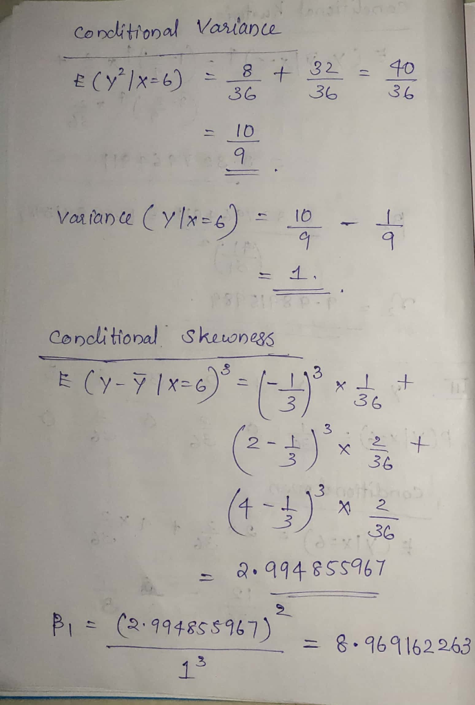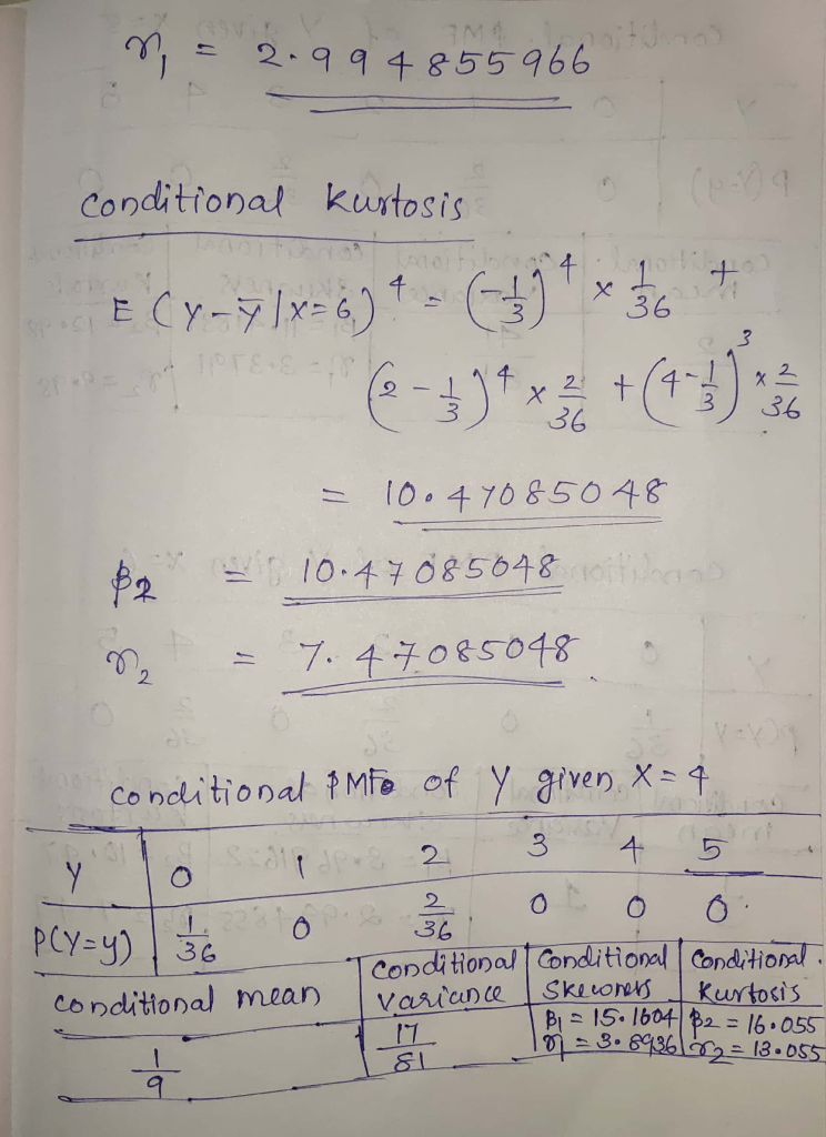 Compute the mean variance SD skewness coefficient snd kurtosis of the conditional distribution of Y given X = x. Are they distributional characteristics constant, or do they depend upon x?