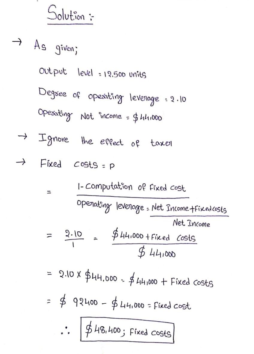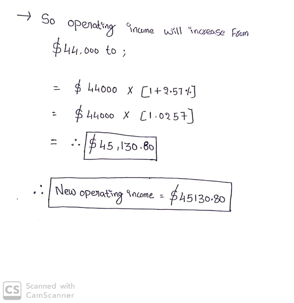 At an output level of 18,500 units, you have calculated that the degree of operating leverage is 2.10. The operating cash flow is $44,000 in this case. Ignore the effect of taxes.