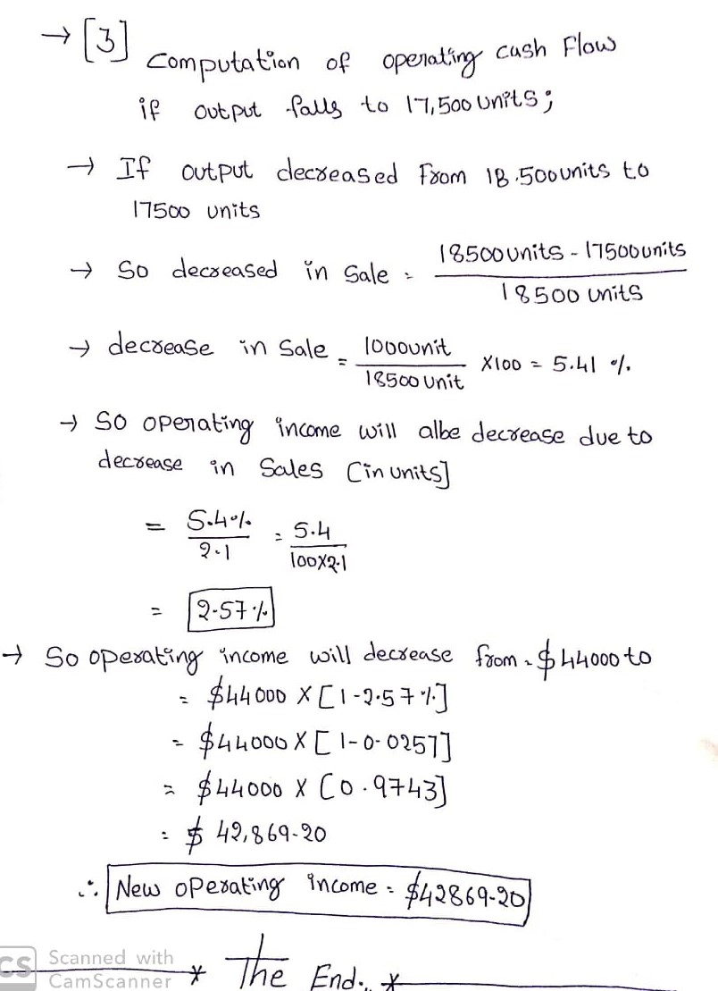 c. What will the operating cash flow be if output falls to 17,500 units? (Do not round intermediate calculations and round your answer to 2 decimal places, e.g., 32.16.)
