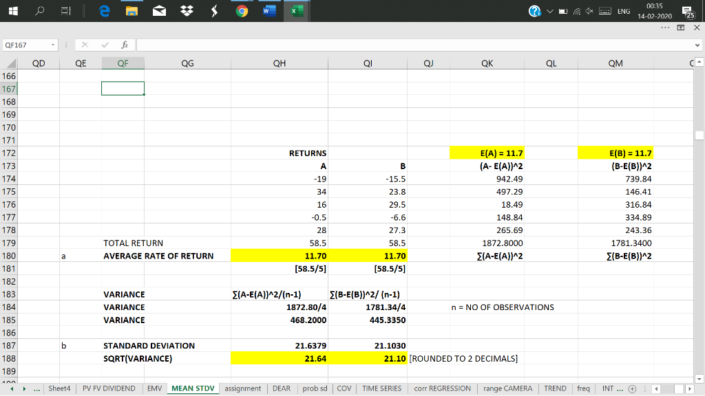 (a) Calculate the average rate of return and standard deviation of returns (as percents) for each stock during the 5-year period. (Round your standard deviations to two decimal places.)