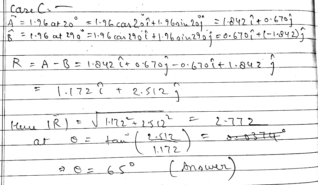 CASE C: Vector A: 1.96N at 20 degrees Vector B: 1.96N at 290