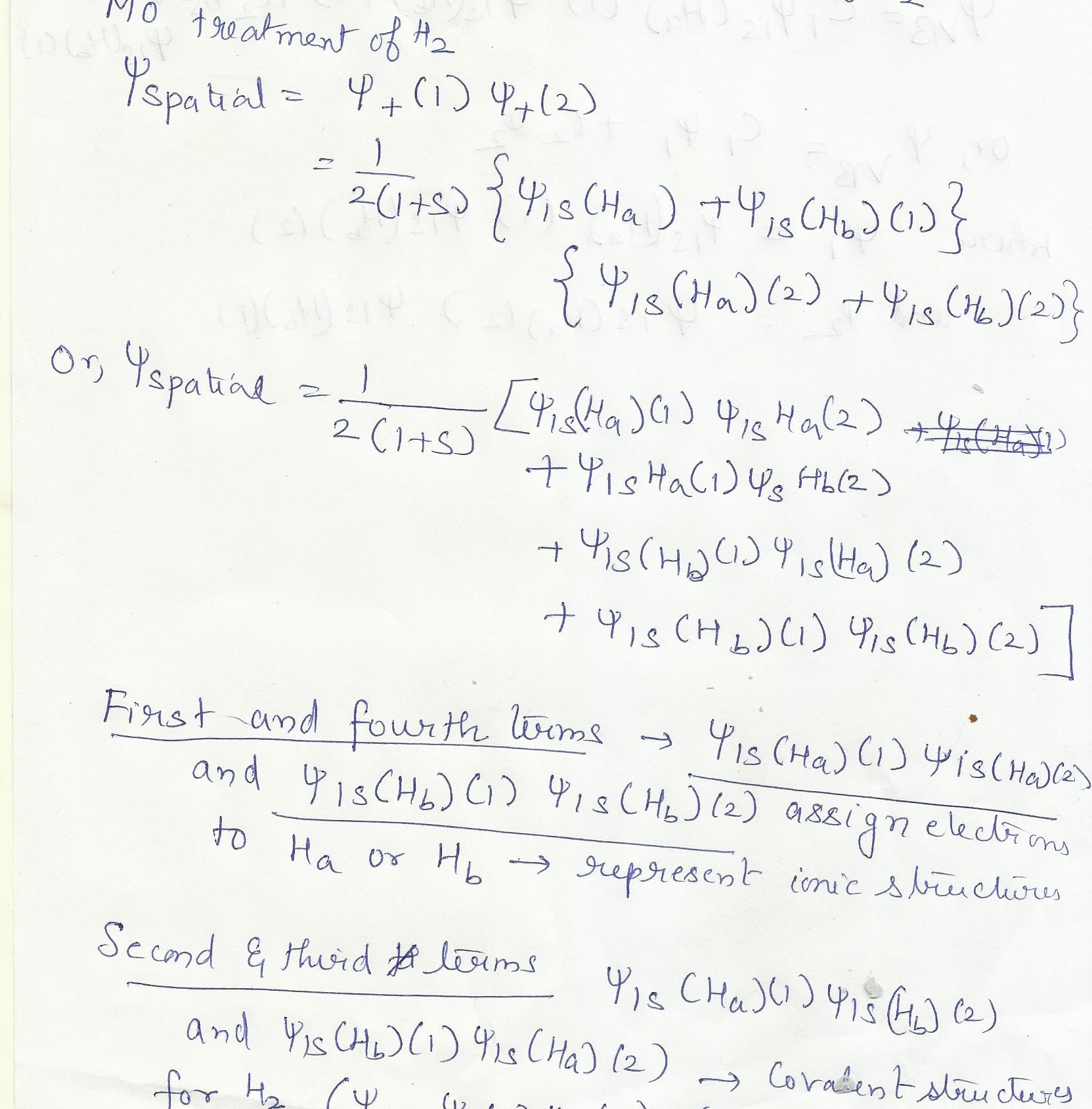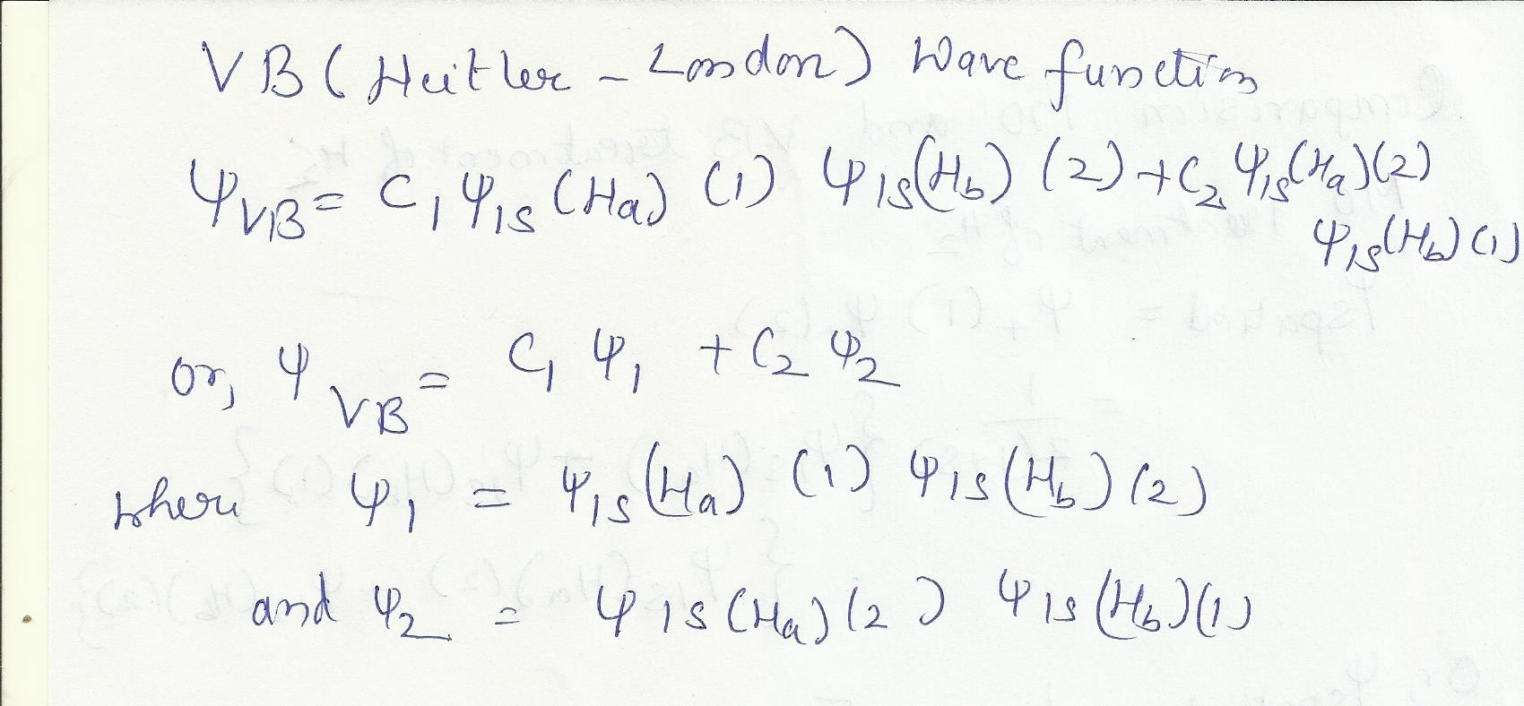 In addition to the molecular orbital treatment of H2, the ground state can be treated by the so-called valence bond (Heitler-London) approach, where individual covalent bonds are combined to form an antisymmetric wave function with spins up and down. Look up this approach and compare the results with the simple MO treatment in terms of bond energy (kJ/mol) and bond distance (pm).