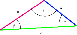 Figure A1 illustrates a general triangle. The three sides are labeled a, b, c, and the three angles are labeled α, β, γ.