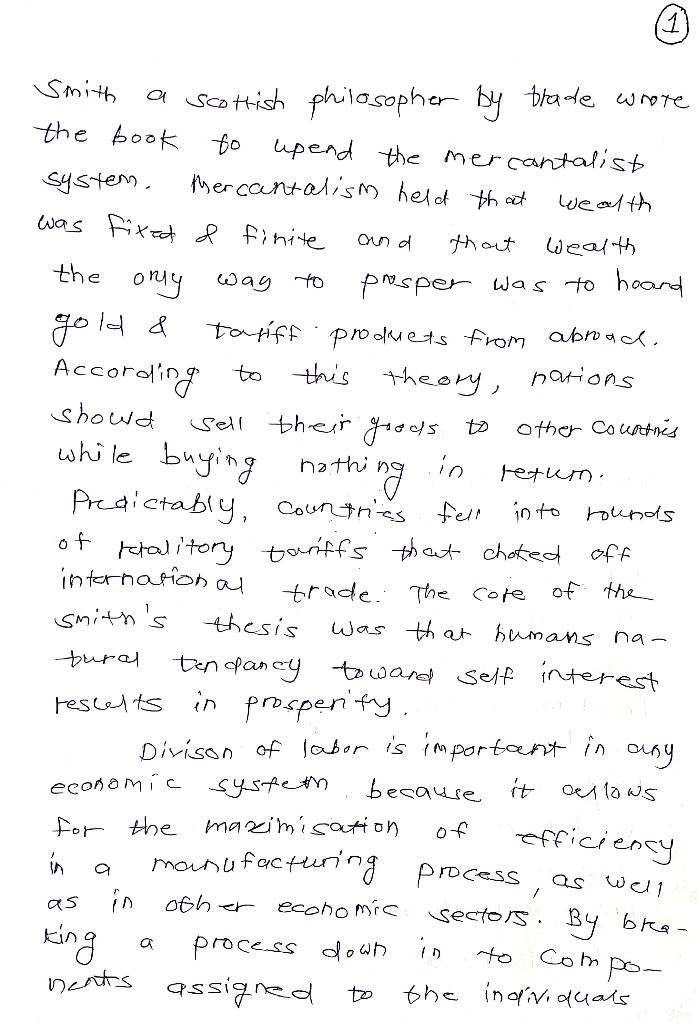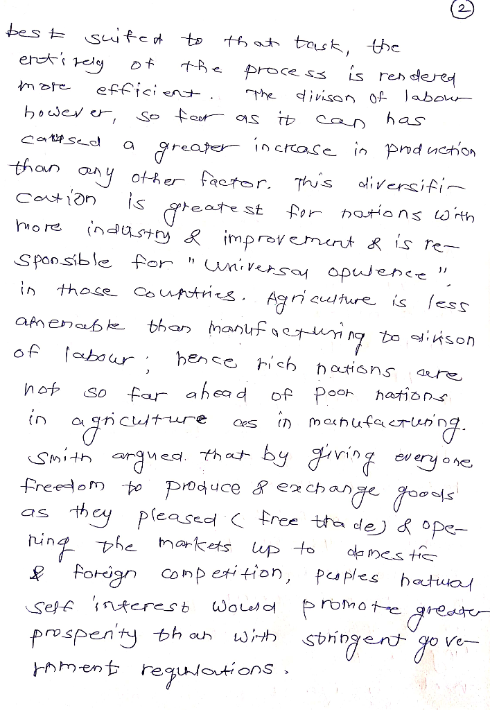 What did Smith mean by the Division of Labor and why did he see it as crucial to explaining the Wealth of Nations? What is the cause of the Division of Labor, for Smith? How does the division of labor increase productivity, in his view? What is the effect on workers? Explain how Smith's work on the division of labor challenges the standard neo-classical account of the economy built on the assumption of constant returns, and how it supports a different argument for free trade than we get from Ricardo's theory of comparative advantage
