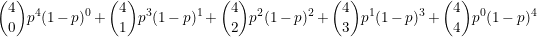 this is equivalent to the sum of n=4 terms of binomial distribution with parameters n,p