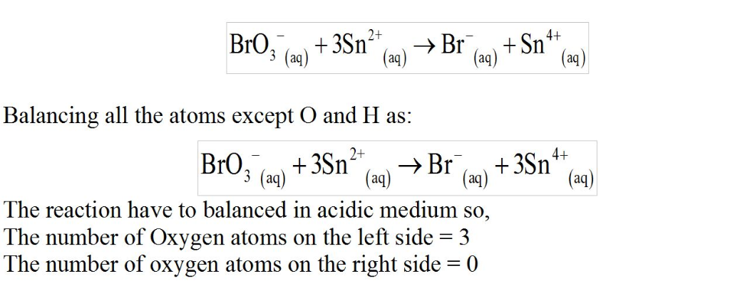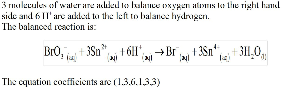 BrO3?(aq)+Sn2+(aq)+ ____ ?Br?(aq)+Sn4+(aq)+ ___