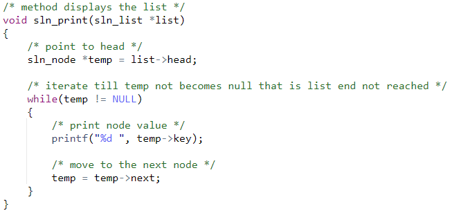 /* iterate till temp not becomes null that is list end not reached