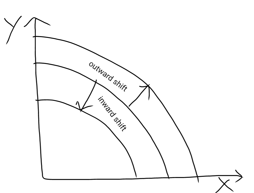 (PPC will shift inside if for eg- there is war, disease, decrease in technology etc.)