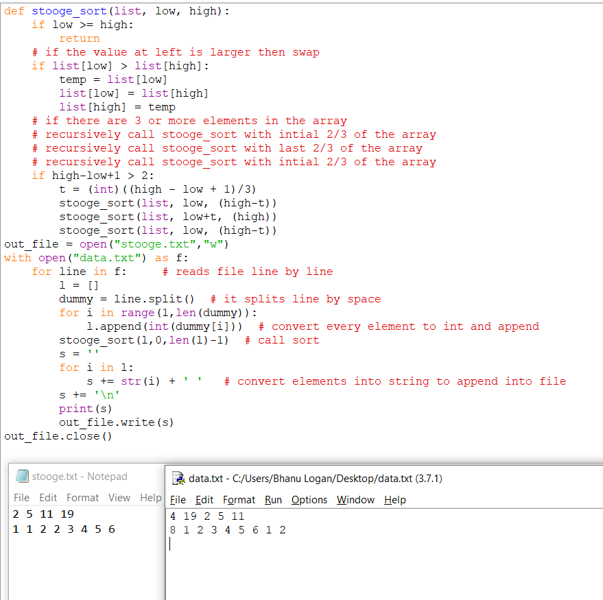 Using PYTHON. Implement the stooge sort algorithm3to sort an array/vector of integers.