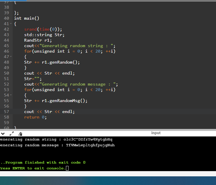 I need to develop an abstract class/ class that will be called RandString will be used as a base class for two derived classes: RandStr will generate a random string with 256 characters long and a RandMsgOfTheDay will return a random message the day. (use a table of message in memory - or in a file).