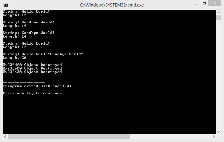 cout << str3 << endl; // Should print Goodbye World!