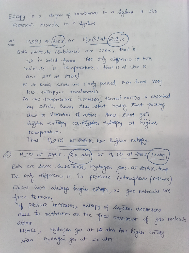 (b) 1 mole of liquid ethanol at 20oC and 1 mole of liquid