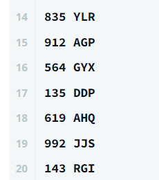 Write a Python program that prints 20 “random” license plate numbers, each one consisting of three randomly-chosen digits followed by three randomly chosen upper-case letters. The first digit cannot be zero. Sample output might look like: 382 HGK 819 YEU