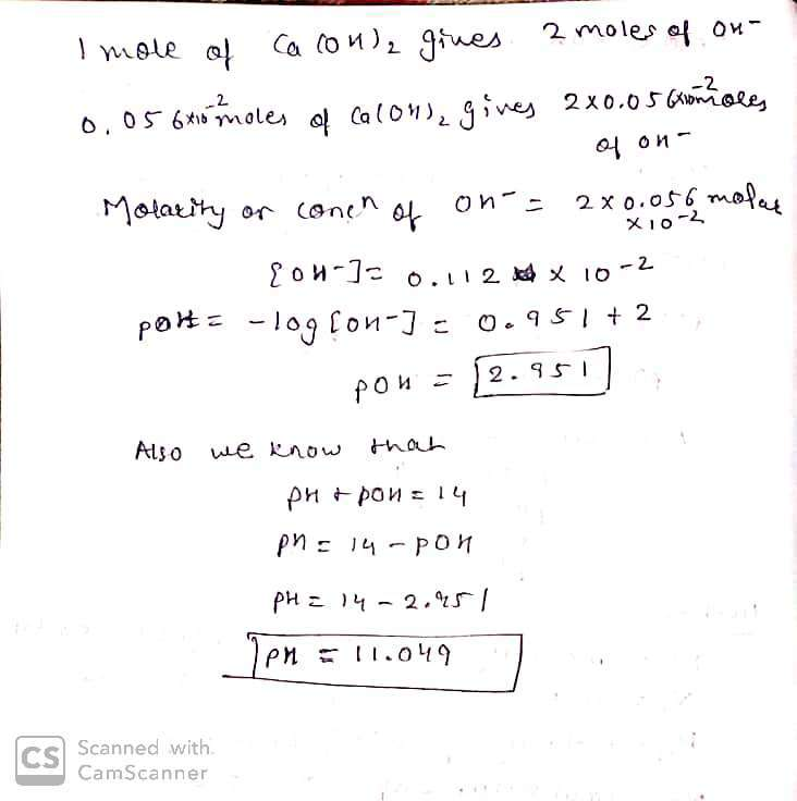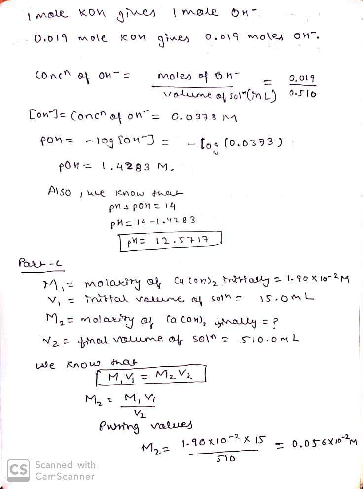 Calculate pH for strong base solution: 15.0 mL of 1.90×10−2 M Ca(OH)2 diluted to 510.0 mL.