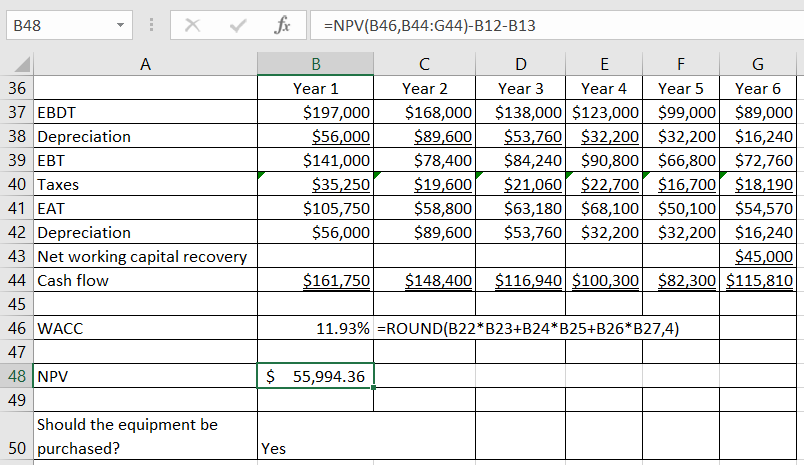 Be sure to include the recovered working capital in Year 6.