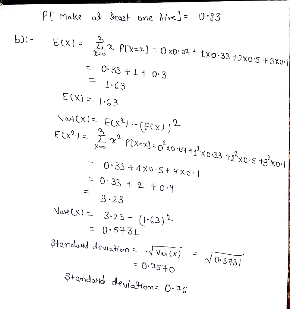 b. Find the expected value and the standard deviation of the number of hires. (Round intermediate calculations to at least 4 decimal places. Round your final answers to 2 decimal places.)