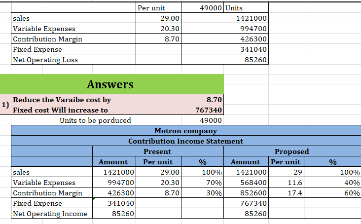 Morton Company’s contribution format income statement for last
