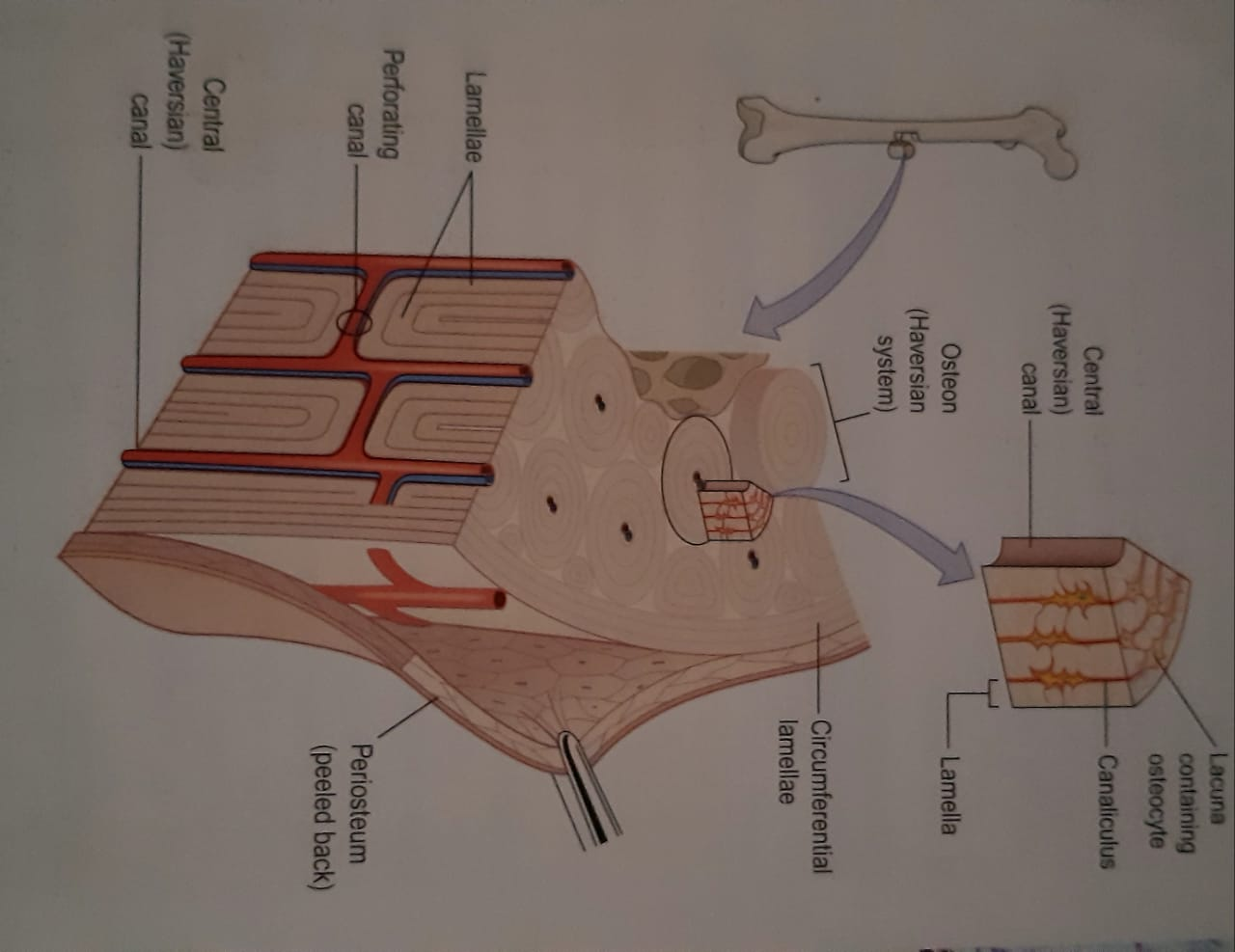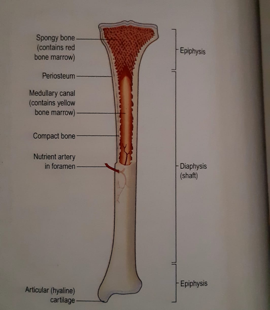Diaphysis, Compact bone, spongy bone, red bone marrow, yellow bone