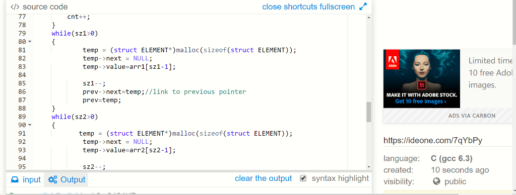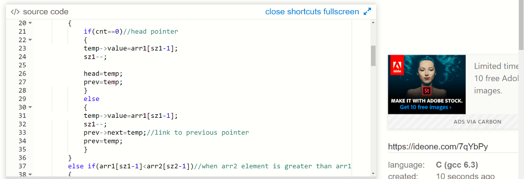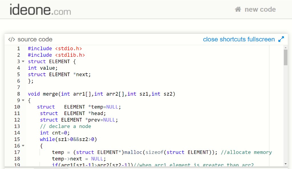Write a C program to take two integer arrays in ascending order and combine them in a new array in descending order. Remove any duplicates in the final array, if any. Your code must store the arrays as a linked list of objects, each put in a “struct.” All operations should also be carried out using linked lists.