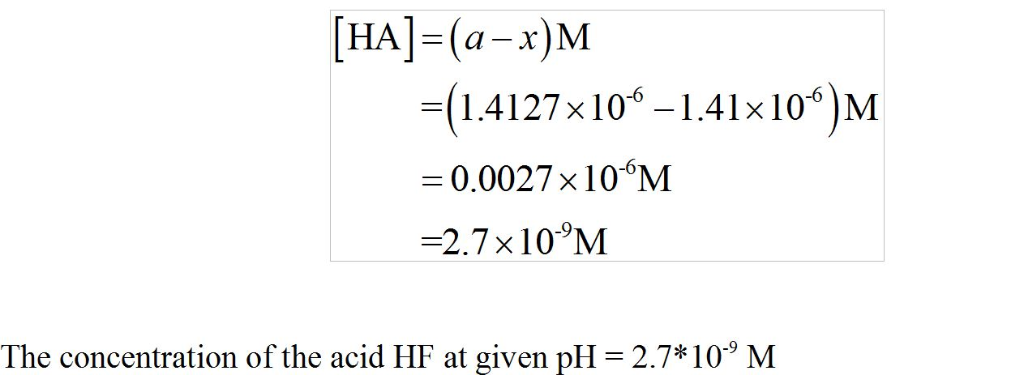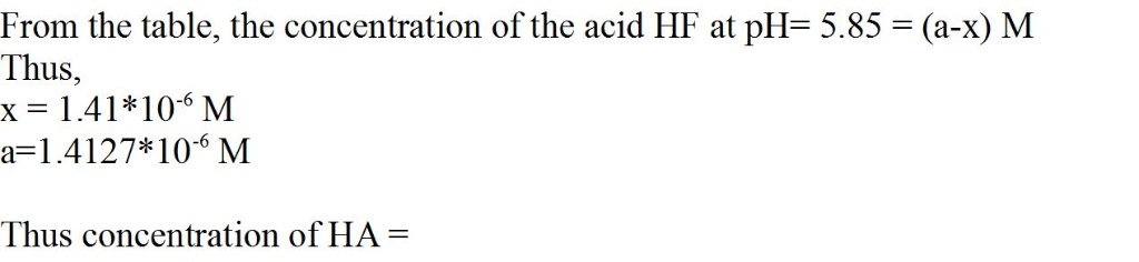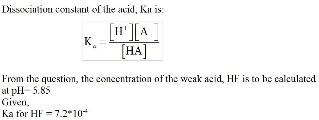 concentration of HF in an aqueous solution with a pH of 5.85?