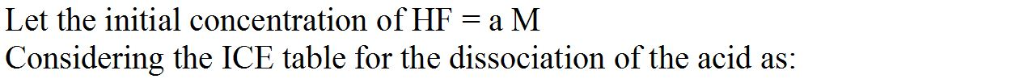 Hyrdrofluoric acid (Ka = 7.2 x 10-4), is used in a