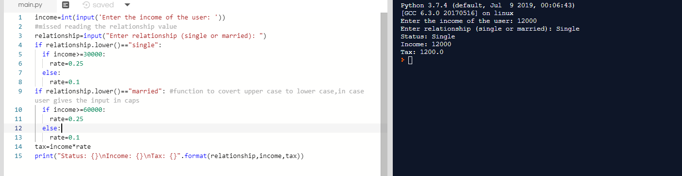 if relationship.lower()=="married": #function to covert upper case to lower case,in case user gives the input in caps