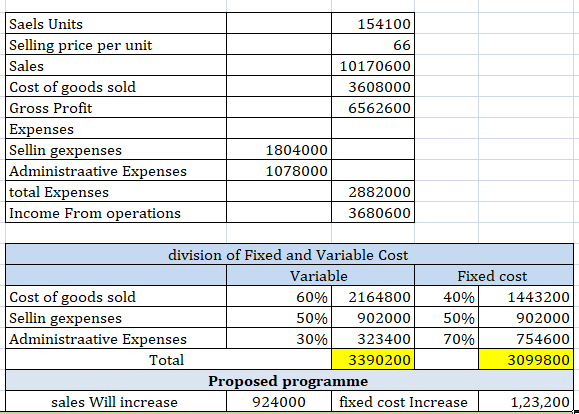 1. Determine the total variable costs and the total fixed costs for the current year.
