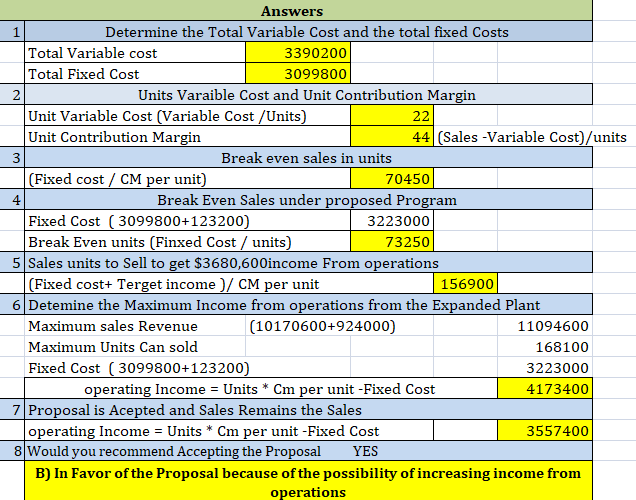 Management is considering a plant expansion program for the following year that will permit an increase of $924,000 in yearly sales. The expansion will increase fixed costs by $123,200, but will not affect the relationship between sales and variable costs.