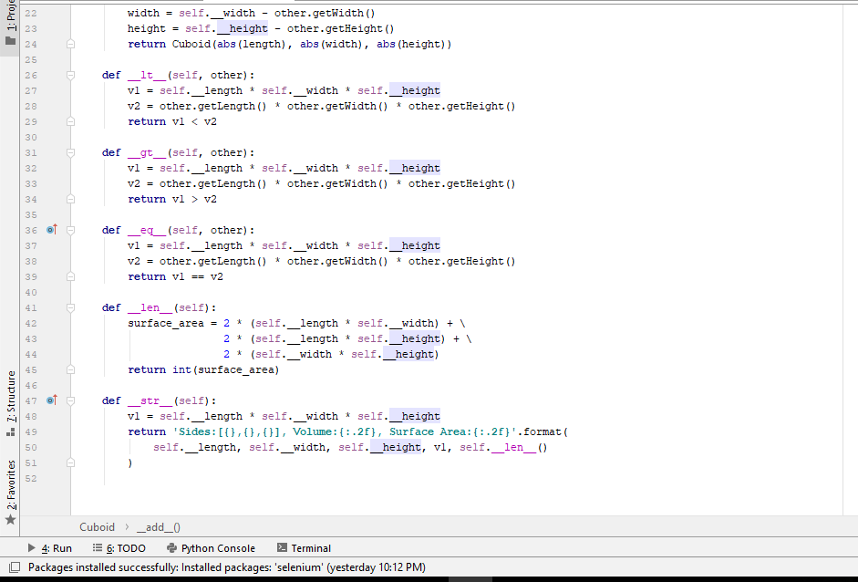print('First Cuboid < Second Cuboid:', cuboid_one < cuboid_two)