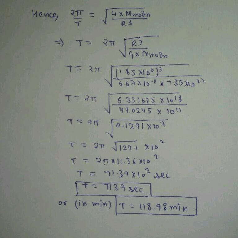 satellite .Hence R=1740+110=1850Km .On solving,time period of