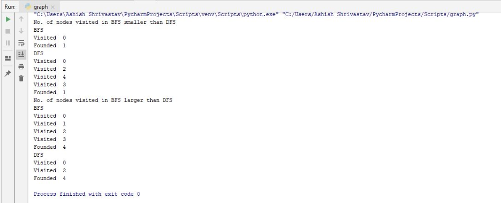print("No. of nodes visited in BFS smaller than DFS")