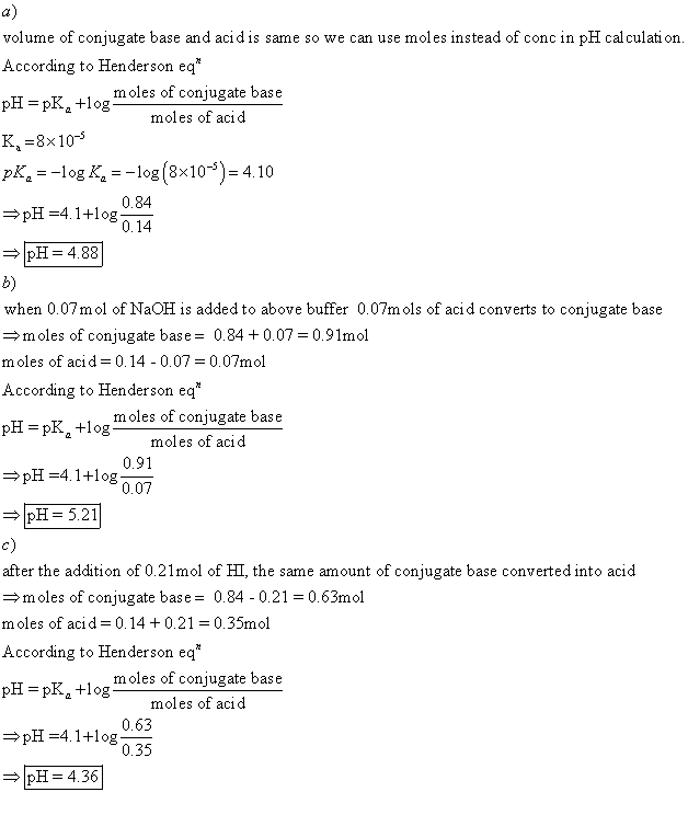 (b) What is the pH of the buffer after the addition of 0.07 mol of