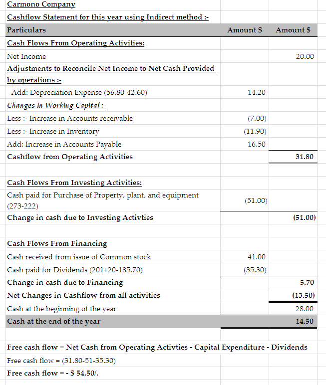 2. Compute Carmono’s free cash flow for this year.