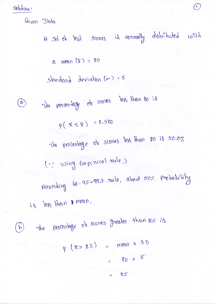 Assume that a set of test scores is normally distributed with a mean of 80 and a standard deviation of 5. Use the 68-95-99.7 rule to find the following quantities.