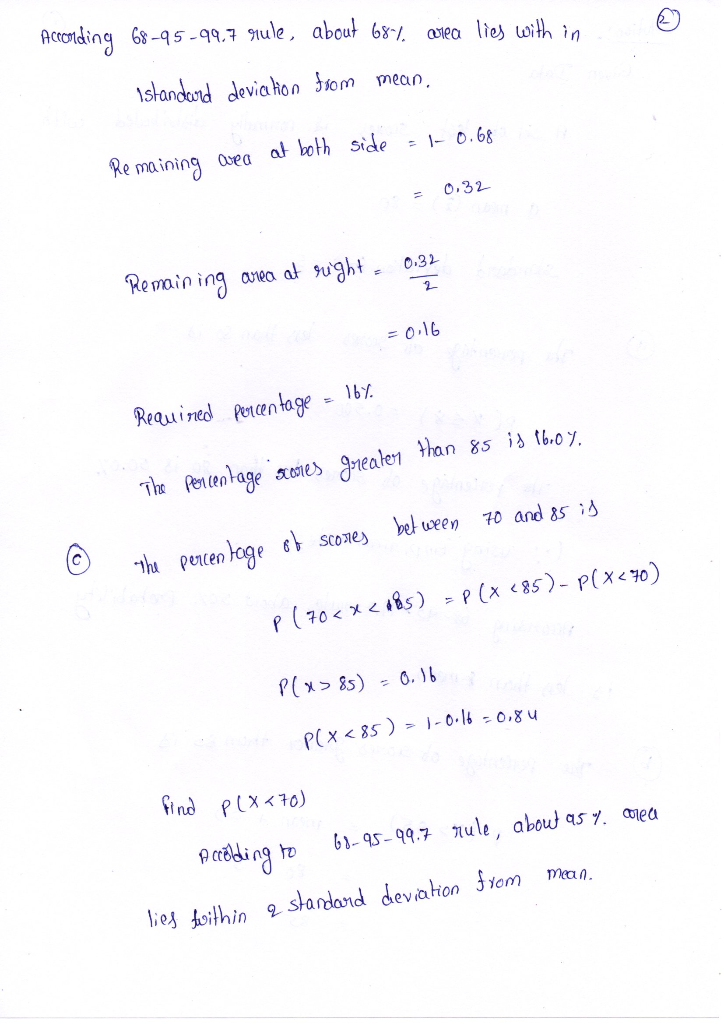 c. The percentage of scores between 70 and 85 is.____% (Round to one decimal place as needed.)