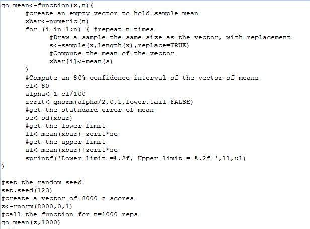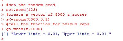 Test your new function by creating a vector of 8000 z scores, and applying your function with 1000 reps