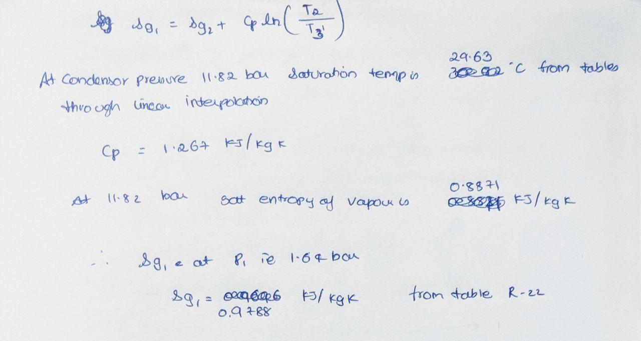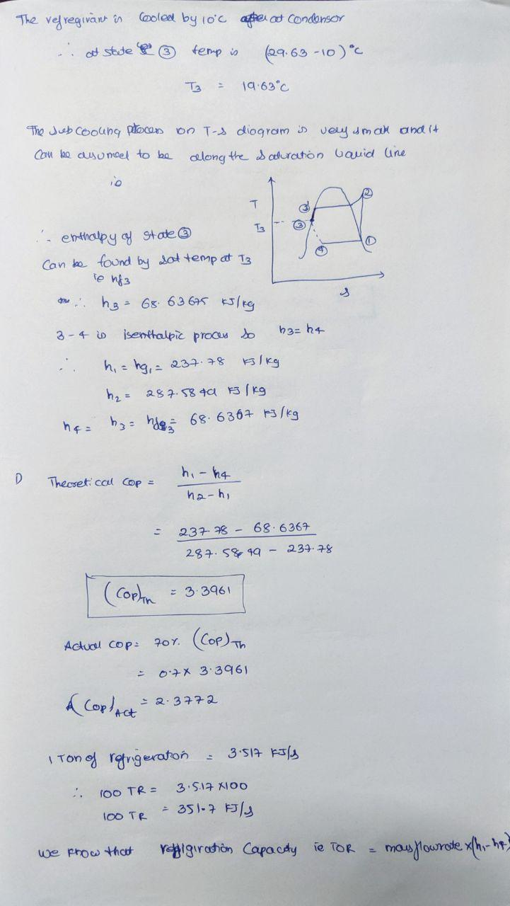 compressor at dry saturated state, whereas it leaves the condenser, subcooled by 10°C.