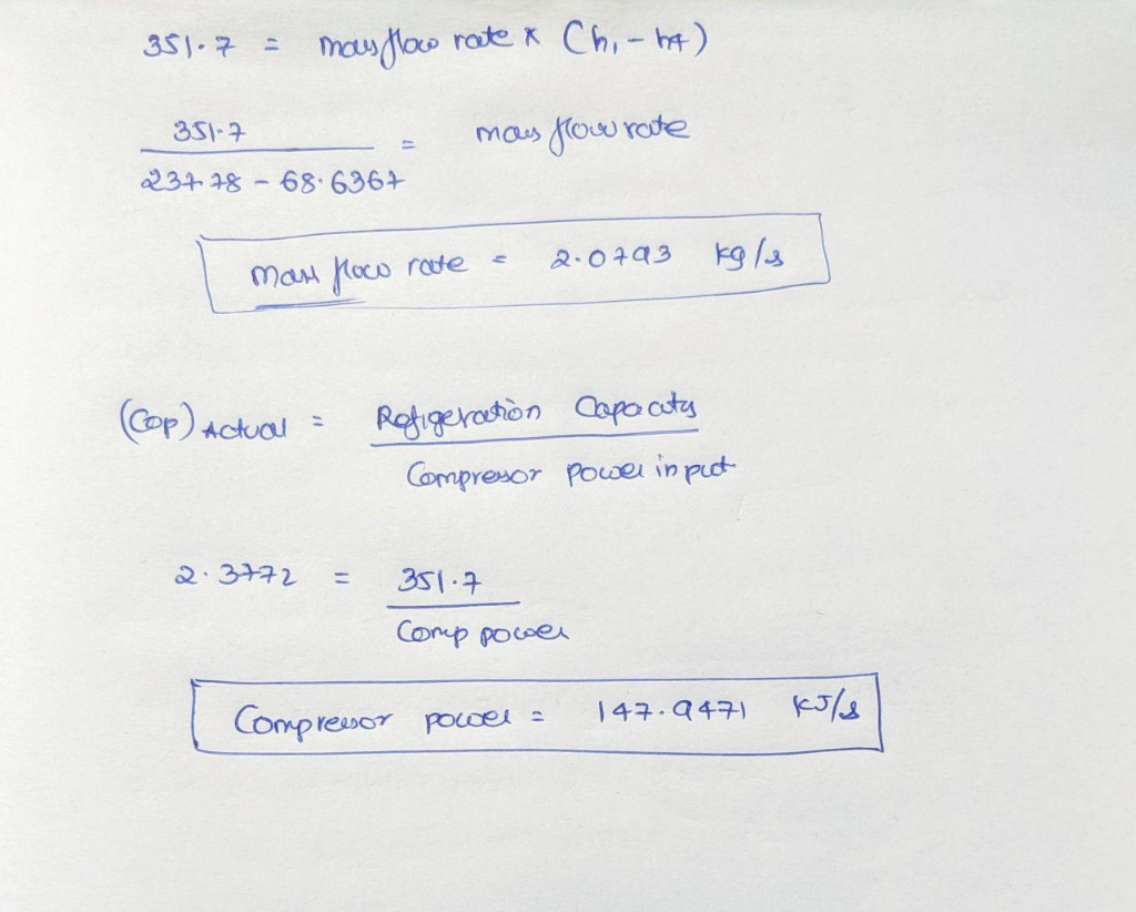 Actual COP is 70% of its theoretical value. Find the following: