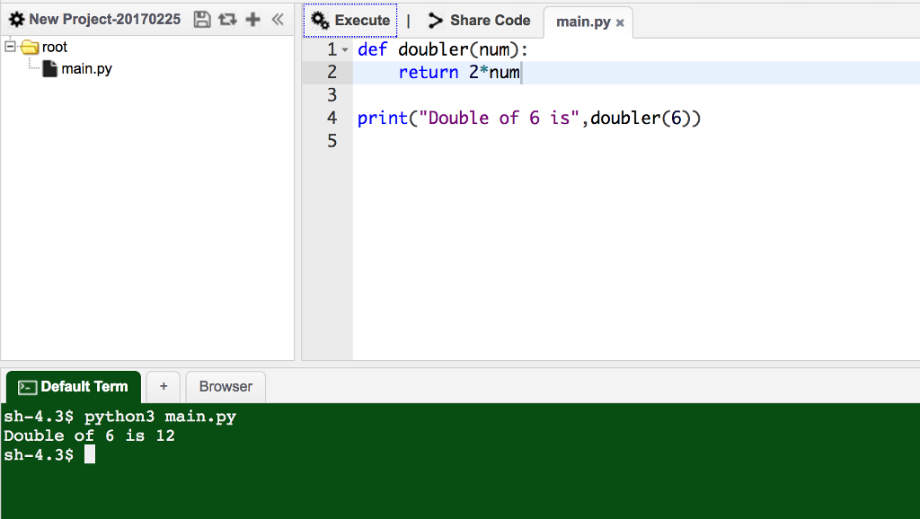 print("Double of 6 is",doubler(6))