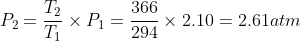 The pressure inside a hydrogen-filled container was 2.10 atm at 21 ?C. What would the pressure be if the container was heated to 93?C ?