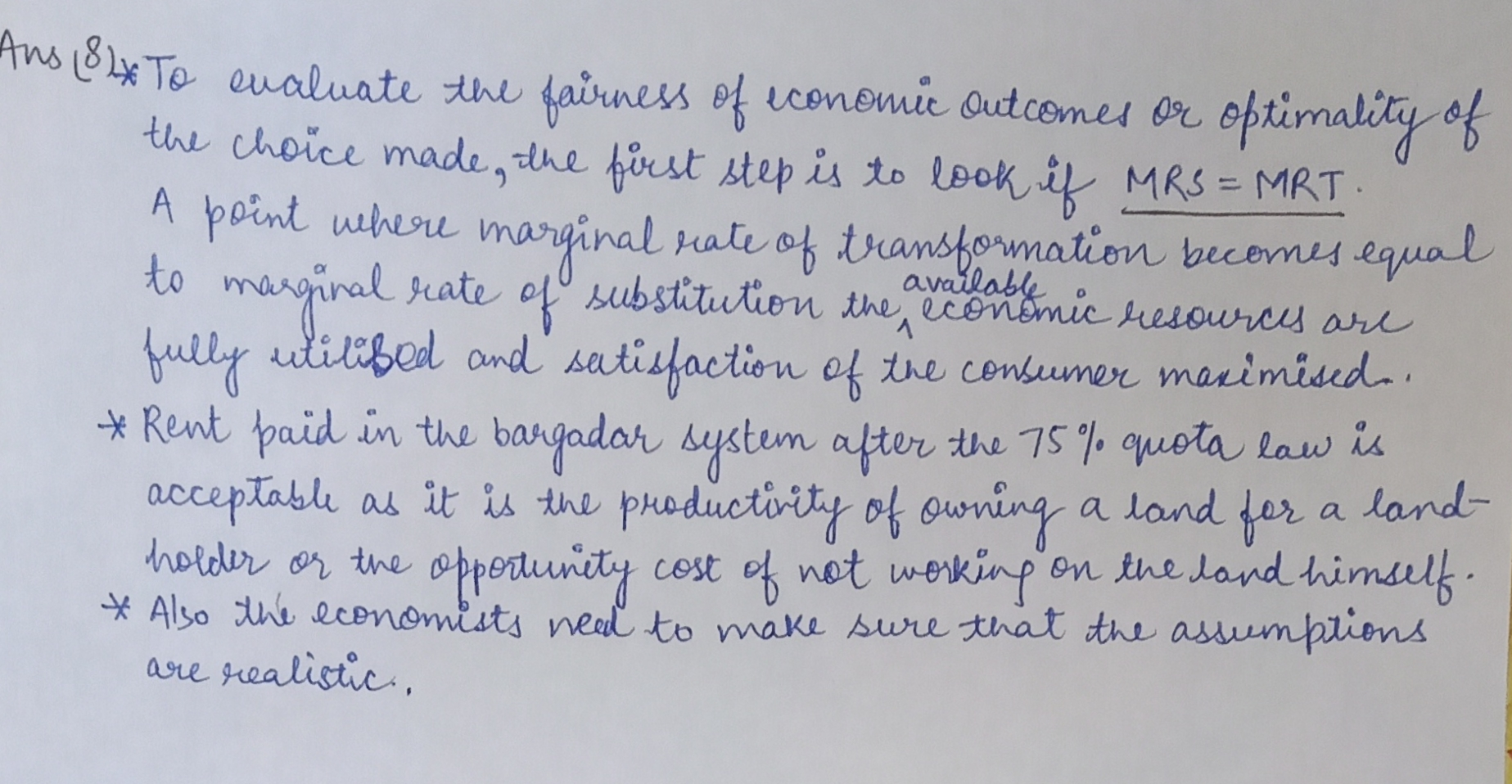 Q7 Using your answer to Q6 as a starting point, show (on a separate model) Mamata’s new optimal choice as a sharecropper. Again, be sure to label and define each of the relevant points and lines on your diagram. List each of the assumptions you made when developing your model.