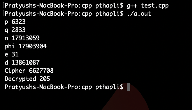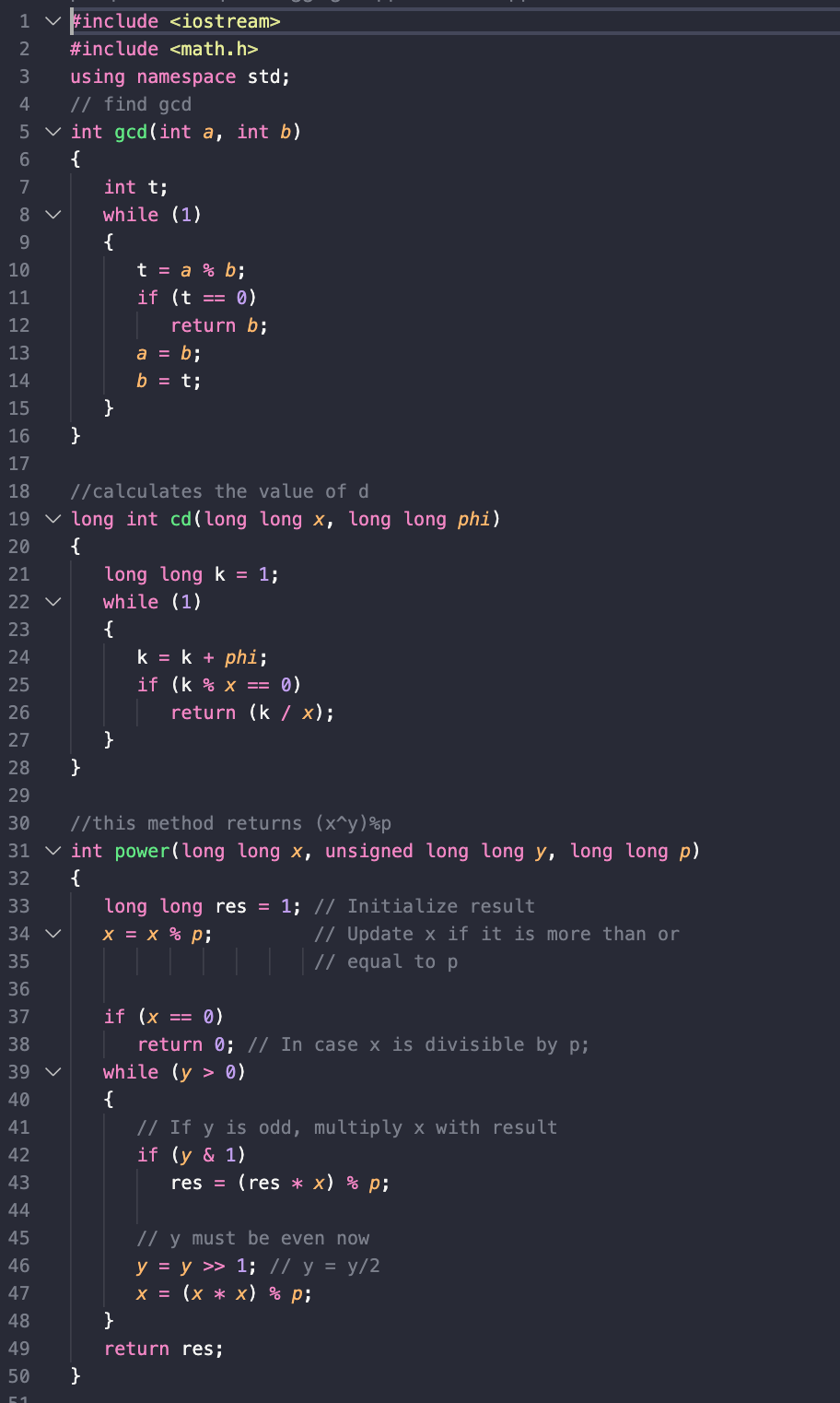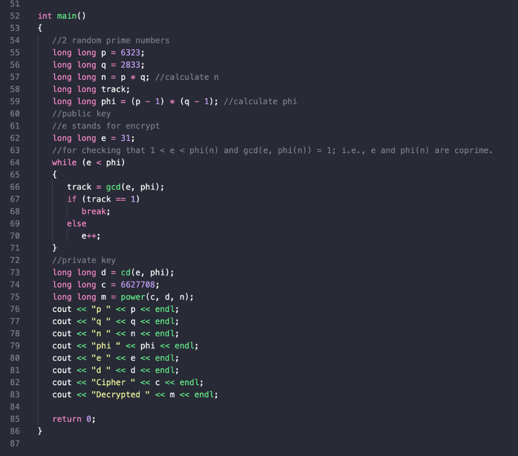 long long phi = (p - 1) * (q - 1); //calculate phi