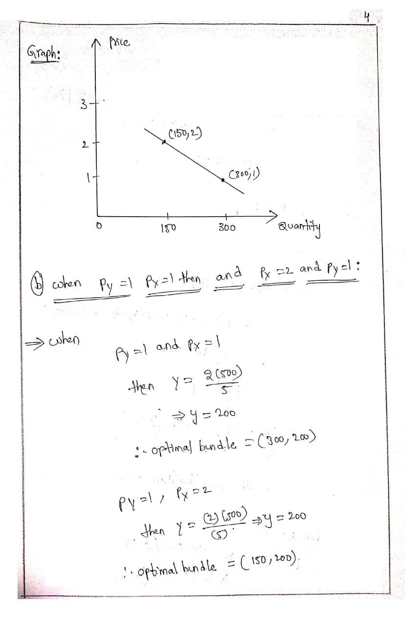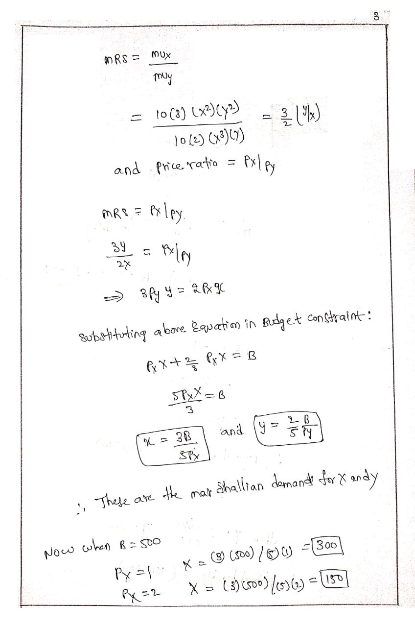 Derive Joyce’s Marshallian demand equation for good X. Also compute her demand for good X when B= 500, and the price of good X is 1 and 2. Also draw the Marshallian demand curve for X at these prices.