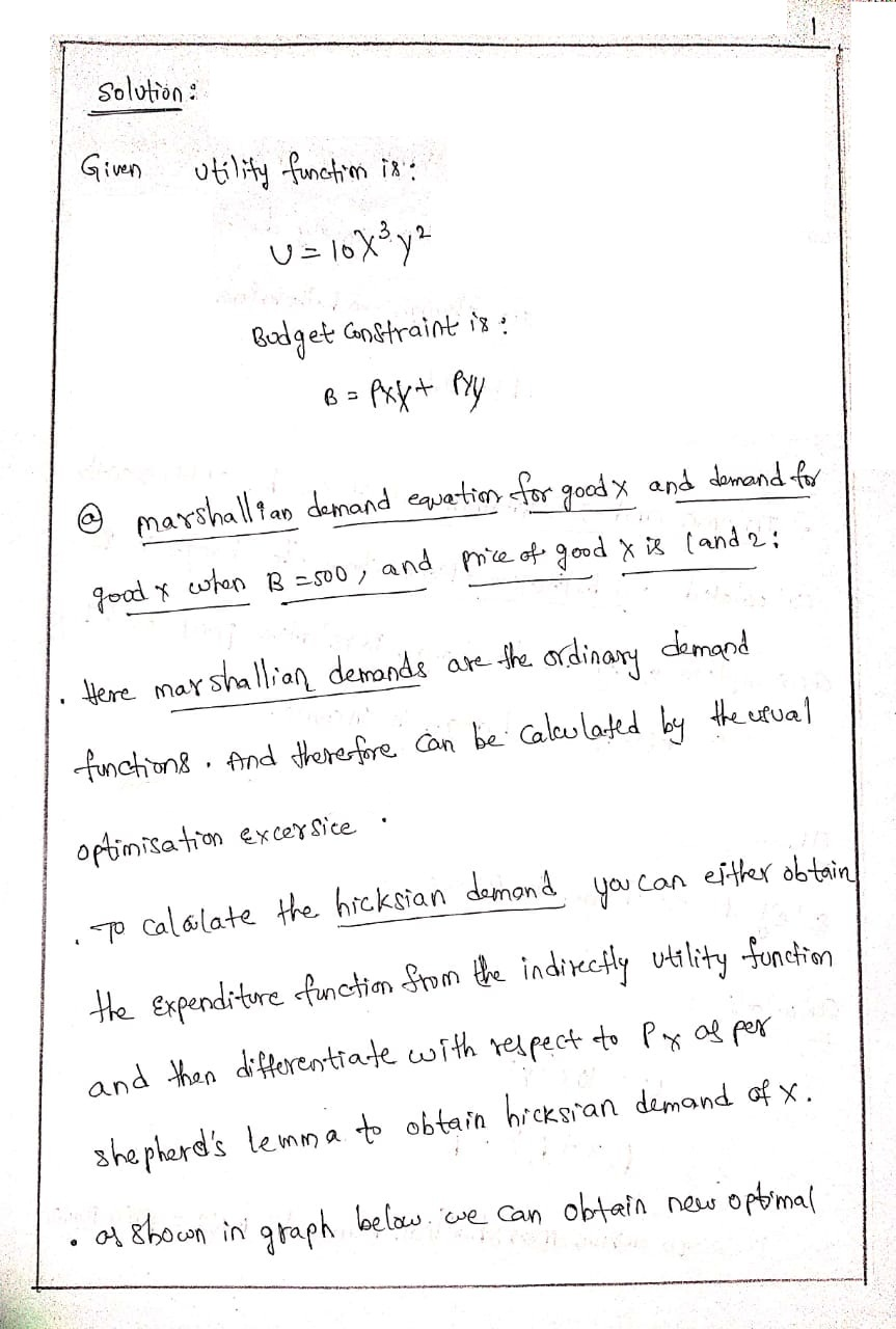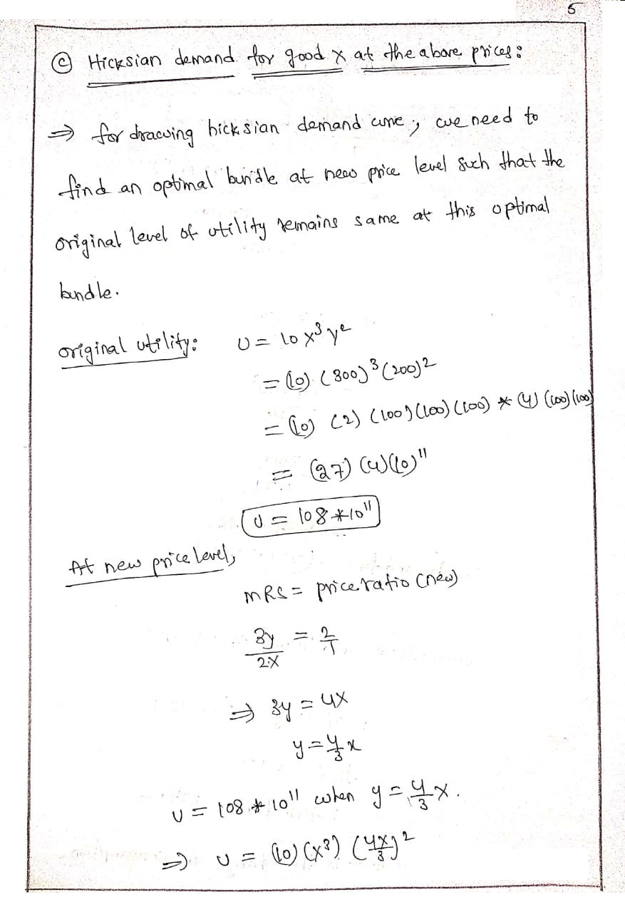 Derive the Hicksian demand for good X at these prices. Hint, you need to choose the three correct equations you’ve derived above and solve simultaneously. Also, draw both demand curves on the same graph.